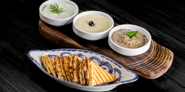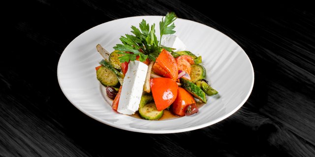 With tomato, cucumber, peppers, onions, capers, Ka...