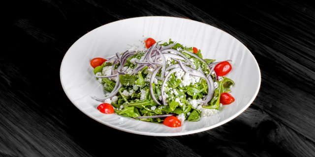 Arugula with cherry tomatoes, onions, shaved feta ...
